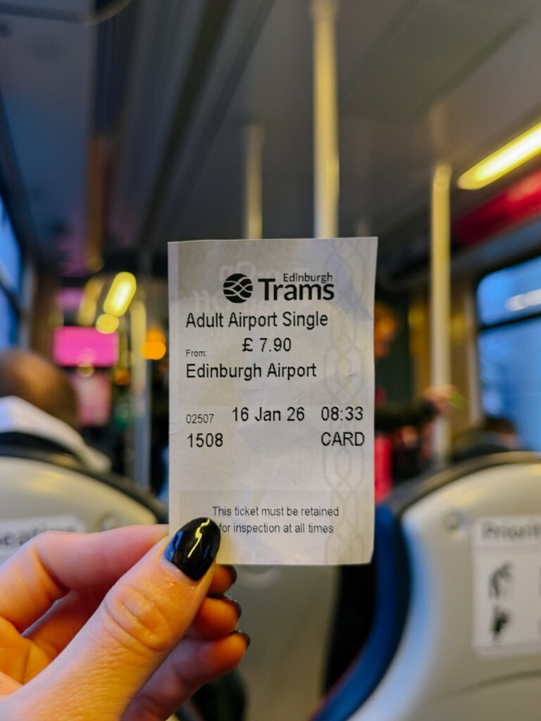 It runs directly from the airport to the city center with stops near Princes Street and beyond. Door-to-door my whole journey was about ~40 minutes, cost me £8 ($11 USD), and was clean, reliable, and 100% stress free.