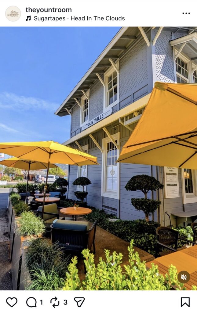 They say Yountville is mostly just for old people but we’re in our 30s and love spending time in Yountville. Especially because there’s a Restoration Hardware (RH) Yountville that I looooove eating at. If you’re not familiar, RH restaurants are known for their impeccable interior design, aesthetic decor, and thoughtfully crafted menus.