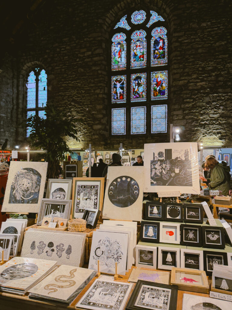 Inside, you’ll find a beautiful space with high ceilings and stained glass all-around. Like I said, churches are usually pretty boring to me (sorry I’m not religious) but Tron Kirk Market is stunning. You can find local vendors selling handmade pottery, jewelry, original art, prints, and more.