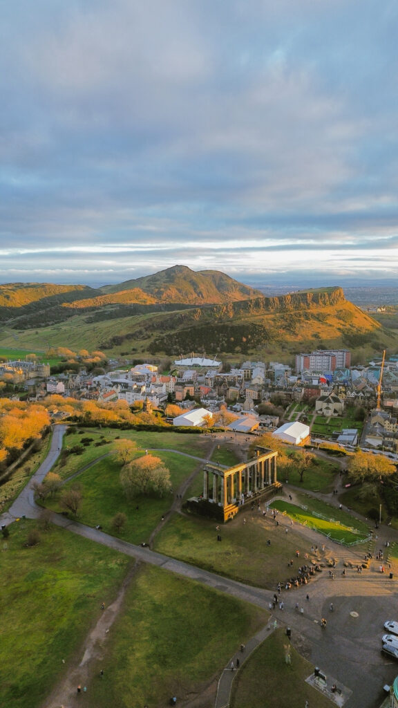 Try to get there ~45 minutes before sunset so you can catch the skyline glow. Calton Hill is perfect for photos, a quick pause between sightseeing stops, and one of the most iconic viewpoints in Edinburgh.